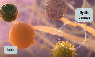 B cells are a type of white blood cell that play a role in the immune system. In people with RMS, B cells are thought to contribute to the immune system’s attack on myelin. Myelin is the protective covering around nerves. Damage to myelin can disrupt communication between the brain and the rest of the body.